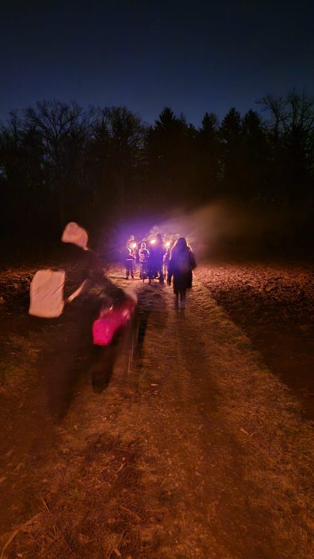 Sobald die Dunkelheit vollständig eingebrochen war, hieß es: „Licht an!“. Mit brennenden Fackeln zog die Gruppe los und verwandelte die Berkheimer Felder in ein beeindruckendes Lichtermeer. Der nächtliche Spaziergang bot nicht nur eine tolle Kulisse, sondern auch die perfekte Gelegenheit für gute Gespräche abseits des Alltags.